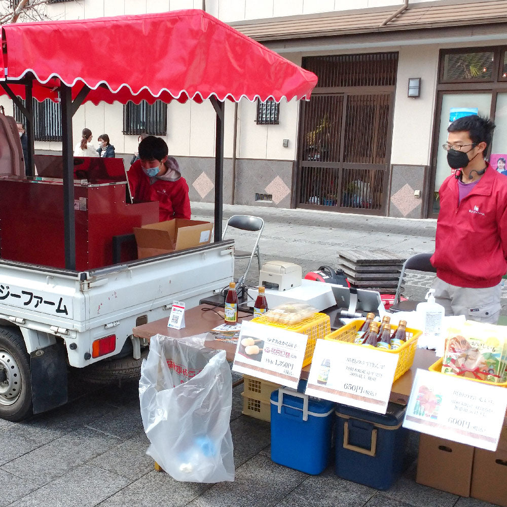 生産した作物や加工品を、地域のお店、自社の実店舗、オンラインショップで販売しています。また、川根の特産品をたくさんの人に知ってもらうために、マルシェやフードフェスにも積極的に参加中。イベントでは「焼き芋カー」を出動させ、冬季シーズンは石焼き芋、夏季シーズンは冷凍焼き芋などを販売しています。イベント出店のお知らせはInstagramで発信中!