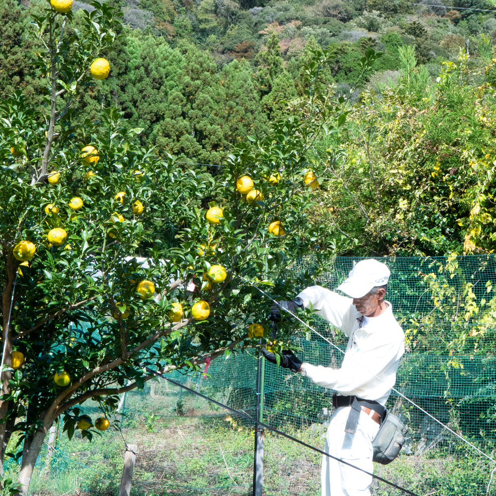 耕作放棄地となった4〜5haの茶園を耕し、さつまいも、ゆず、くりの3つを主軸に生産しています。地域の牧場から堆肥を仕入れ、土づくりから地産地消で行います。茶園は栄養豊富で酸性土壌であるうえ、ふかふかとした柔らかい土であることから、さつまいもとの相性が抜群。また、茶生産に好環境である朝晩の寒暖差は、ゆずにとっても好環境です。川根本町産のゆずは「川根本町ゆず」として、〈しずおか食セレクション〉にも認定されています。