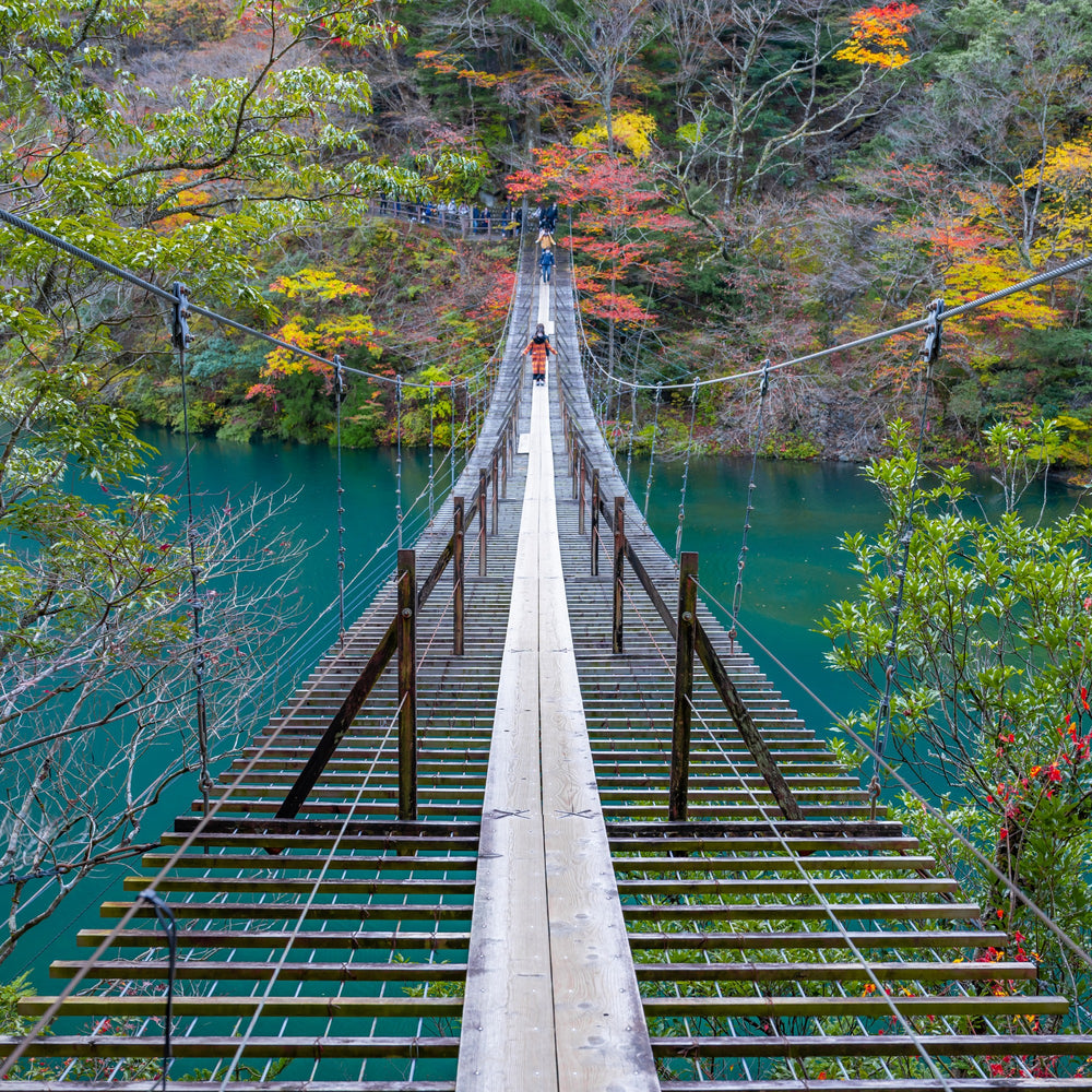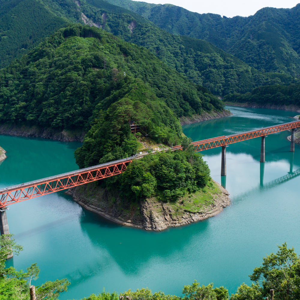 コバルトブルーに輝く湖面を見下ろせる「夢の吊り橋」や、湖に浮かぶように佇む「奥大井湖上駅」。