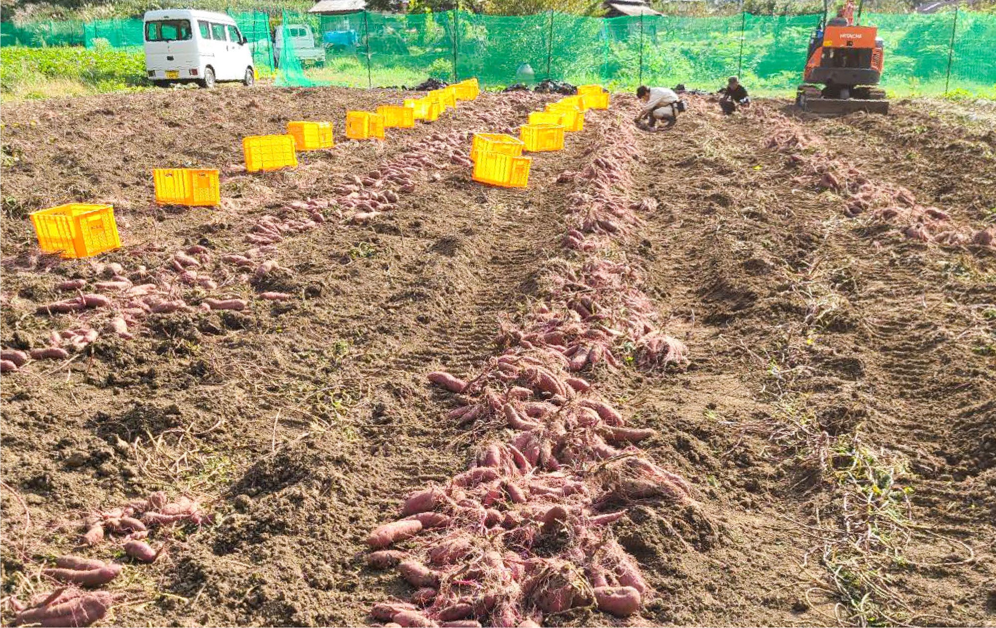 自社農園で栽培した、農薬不使用・除草剤不使用のさつまいも・紅はるか。